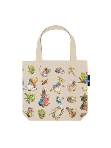 Peter Rabbit tote bag - featuring Peter Rabbit and other beloved Beatrix Potter characters. Product details • 100% cotton canvas • Bottom gusset • 10.5"W x 10.5"H • 5.5" strap (hanging) • Made in the USA ™ © FW & Co., 2024.