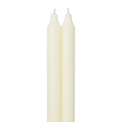 Each Taper burns 1 inch per hour. Smokeless and dripless, fragrance-free and fits all standard taper holders. Product Details: Burns 13 hours. Contains 2 Tapers. 7/8in x 7/8in x 12in. Fits 7/8in (Standard) Holders.