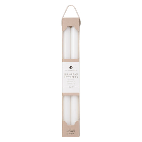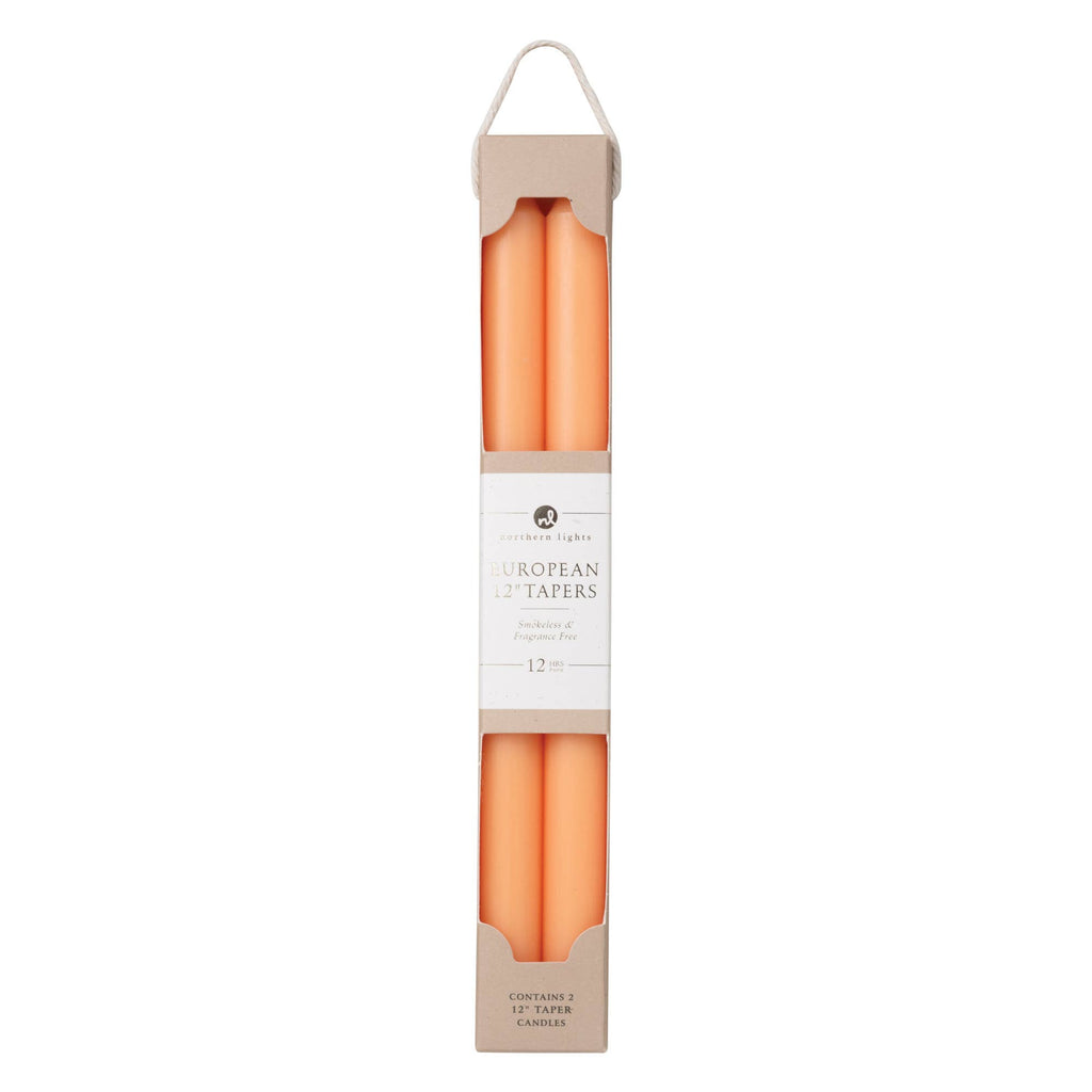 Each Taper burns 1 inch per hour. Smokeless and dripless, fragrance-free and fits all standard taper holders. Product Details: Burns 13 hours. Contains 2 Tapers. 7/8in x 7/8in x 12in. Fits 7/8in (Standard) Holders.