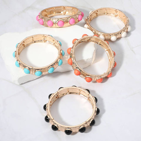 • Size : 0.6" H • Stretchable • Make a bold statement with this striking bangle bracelet featuring rounded bead accents for a modern touch. Its unique design brings a balance of elegance and edge, making it the perfect accessory to complete your everyday or evening look with effortless style. • Lead and Nickel Compliant