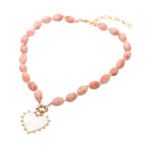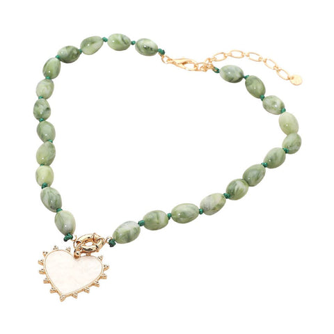 Elegant beaded necklace designed with marbled beads and a statement heart pendant charm. A fashionable accessory perfect for everyday wear or special occasions, adding romantic charm and a unique finishing touch.