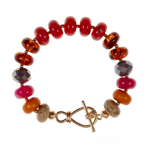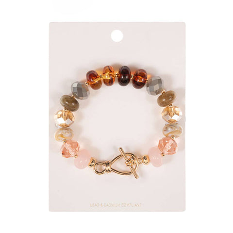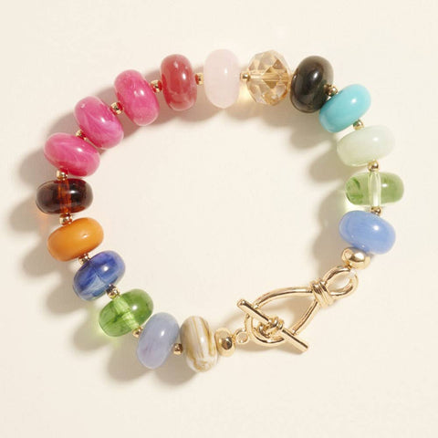 Statement bracelet featuring chunky round beads and a secure toggle clasp. The bold design offers a polished yet playful look, perfect for layering or wearing solo to add modern flair to any ensemble.