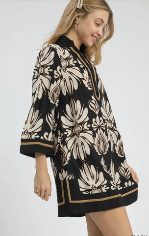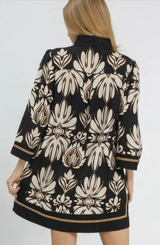 Baroque Floral Tunic Top with Gold Trim