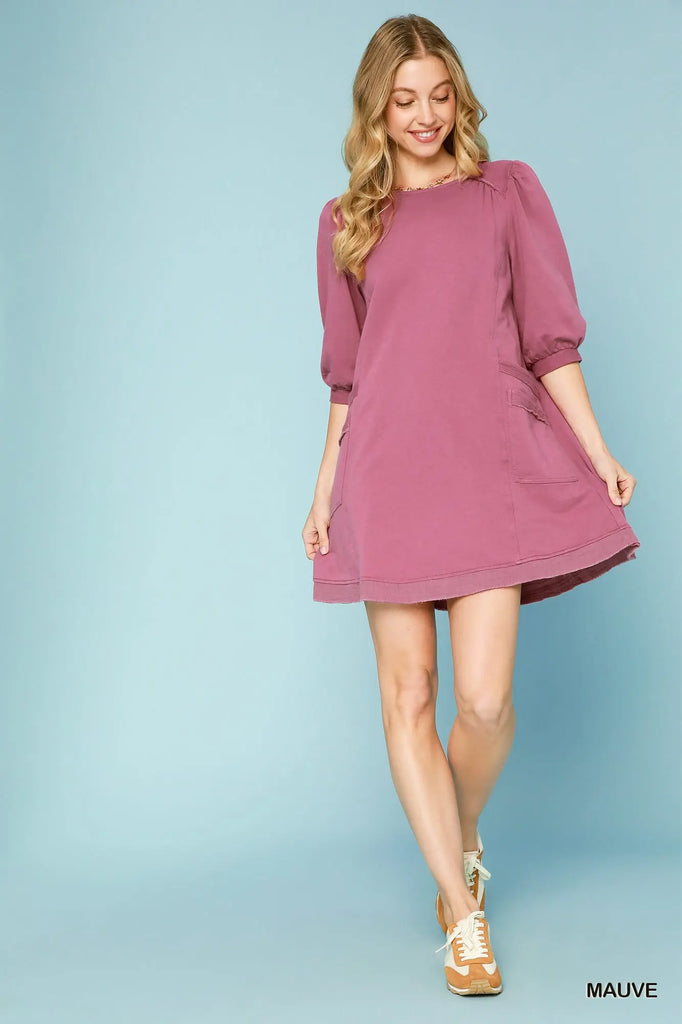 French Terry Mini Dress. Easy throw on dress that looks lovely. Come see us in Falls Church City Virginia.