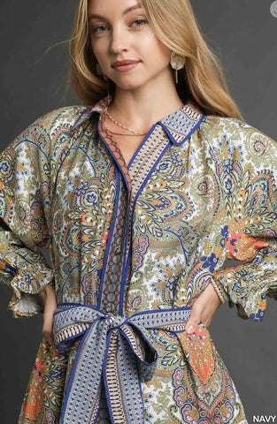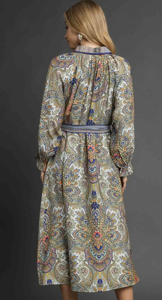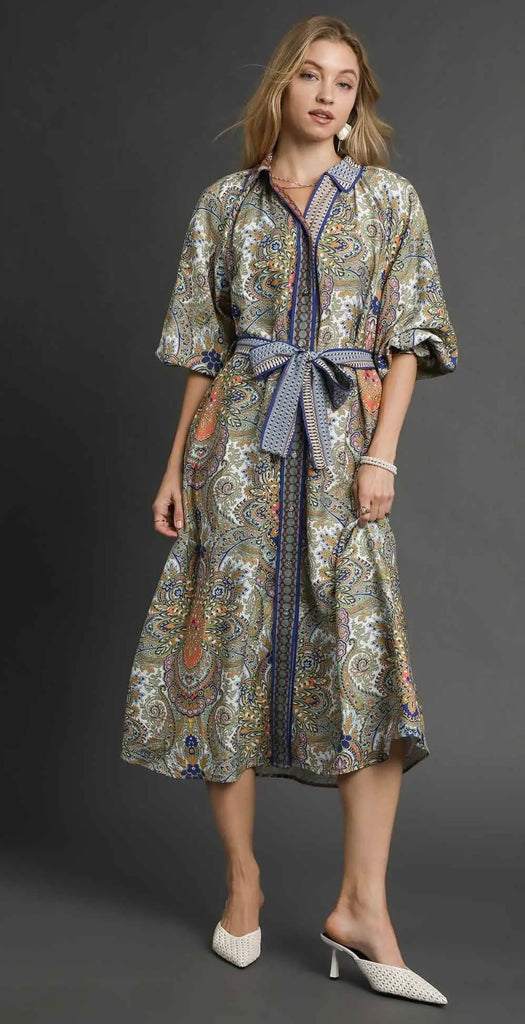 Paisley Mixed Print Belted Midi Shirt Dress