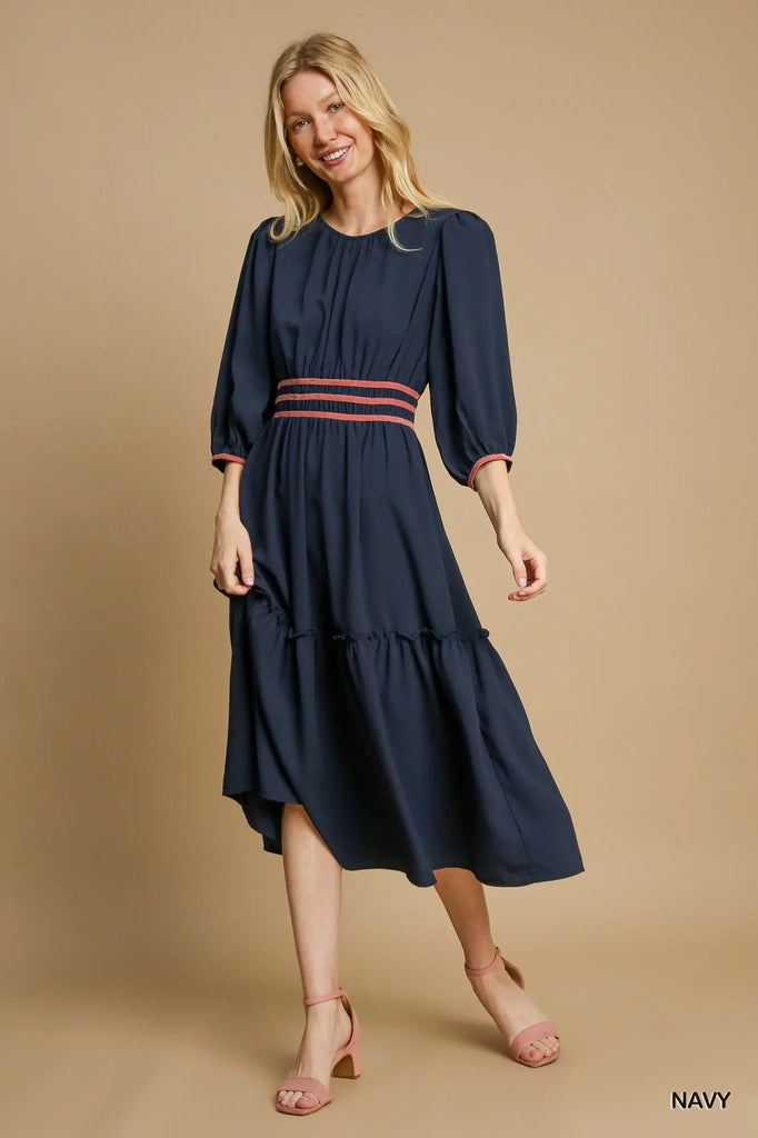 Round Neck Midi Dress. Easy throw on dress that looks lovely. Come see us in Falls Church City Virginia.