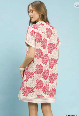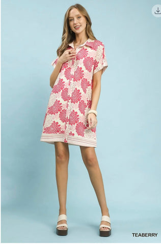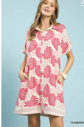 Floral Button-Down Contrast Trim Shirt Dress