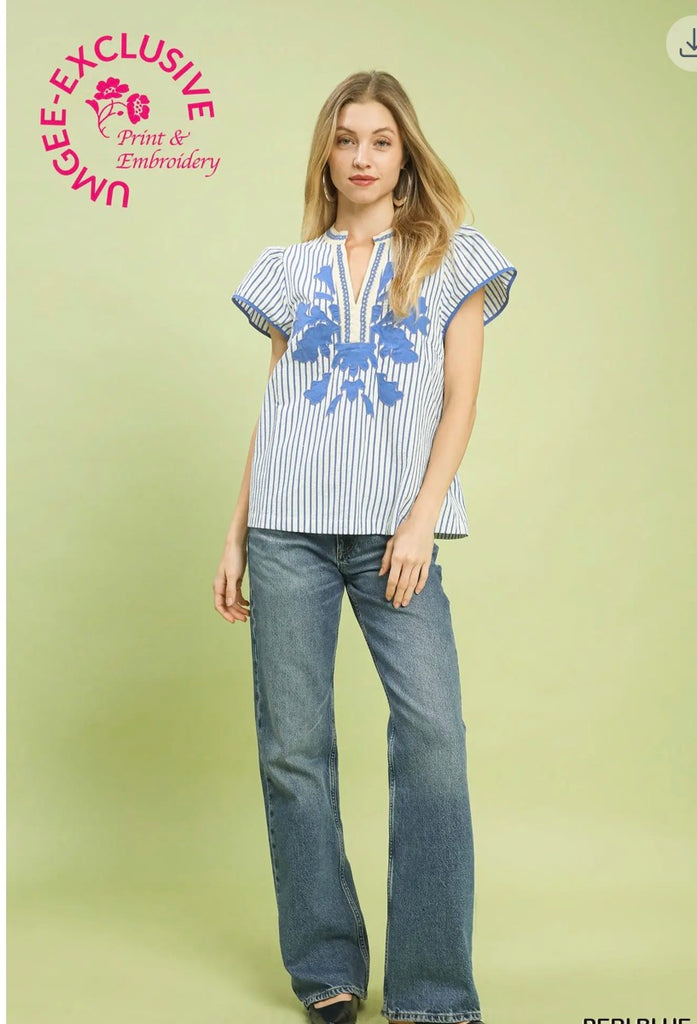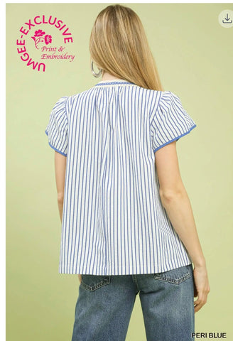 V-Neck Stripe Top with Lace Trim