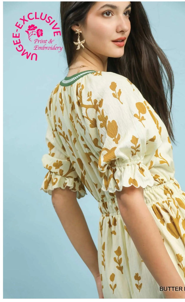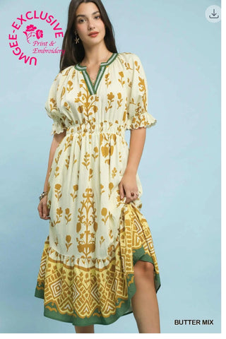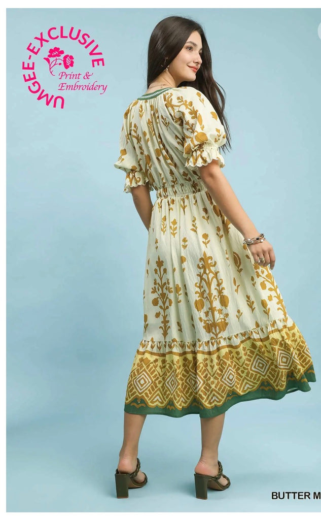 Print Smocked Waist Midi Dress