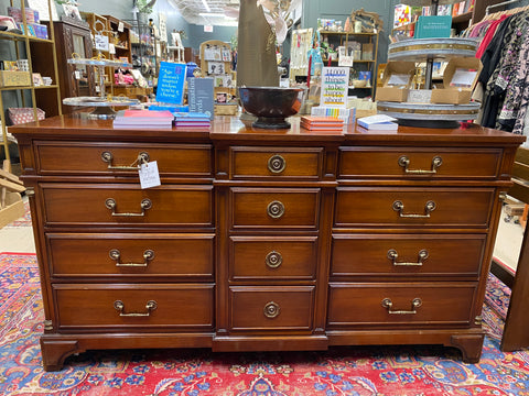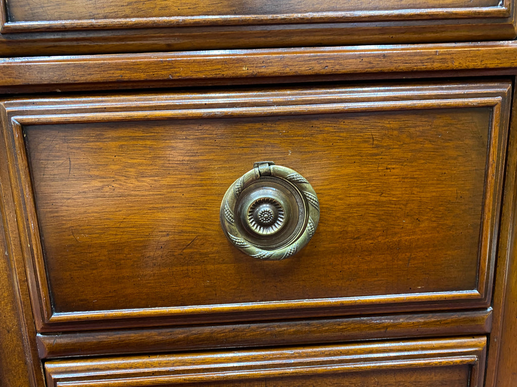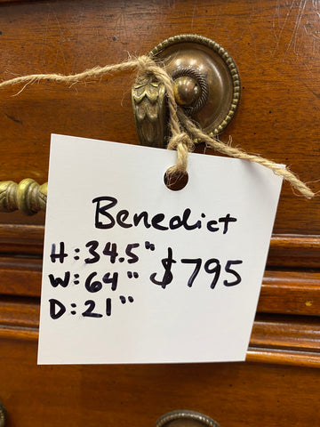 Meet Benedict, a stunning vintage Hathaway’s buffet made of solid mahogany with 12 drawers for ample storage and beautiful brass hardware detailing. Benedict is loaded with style!
