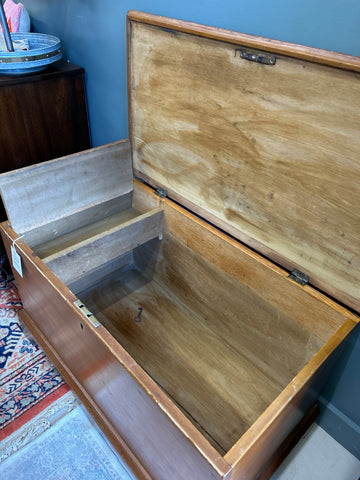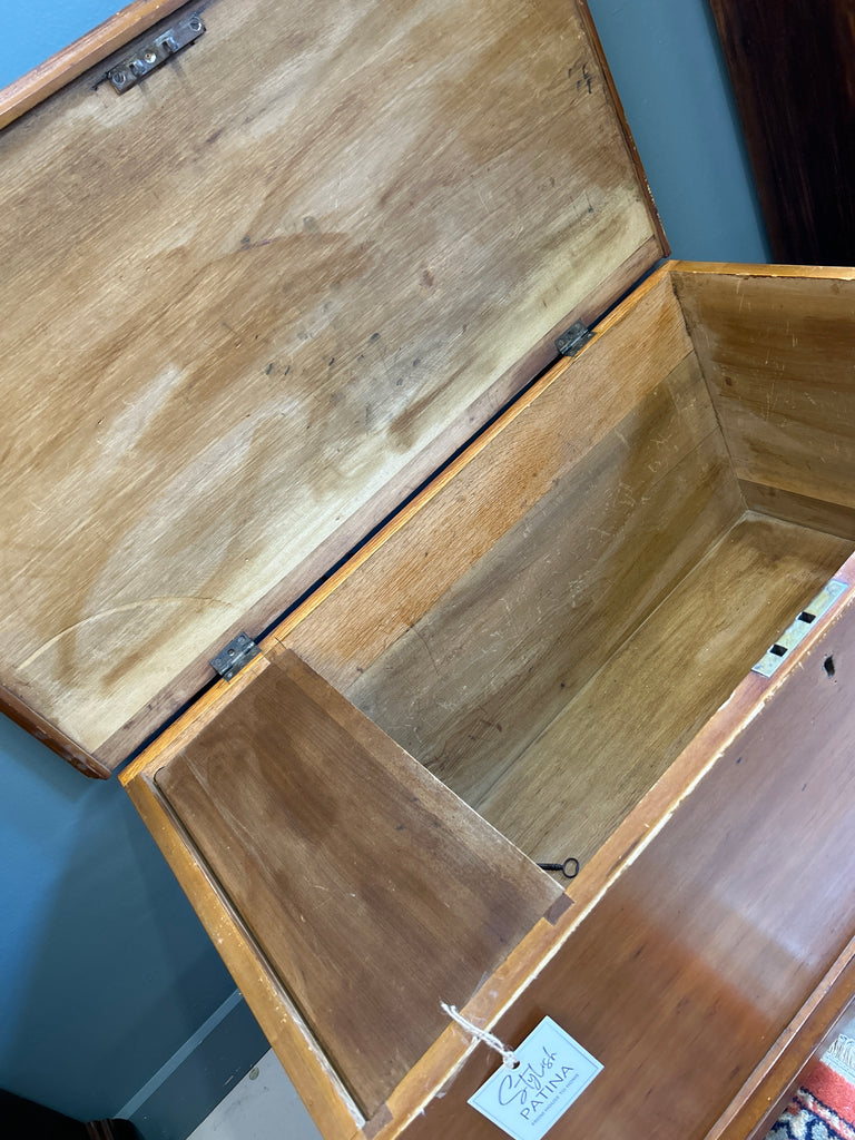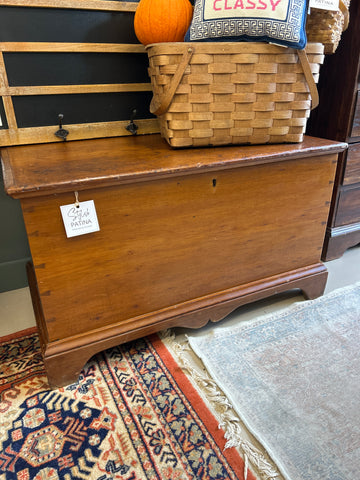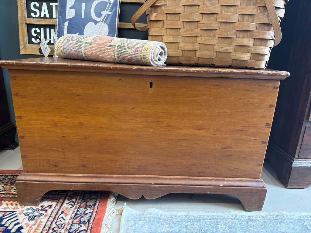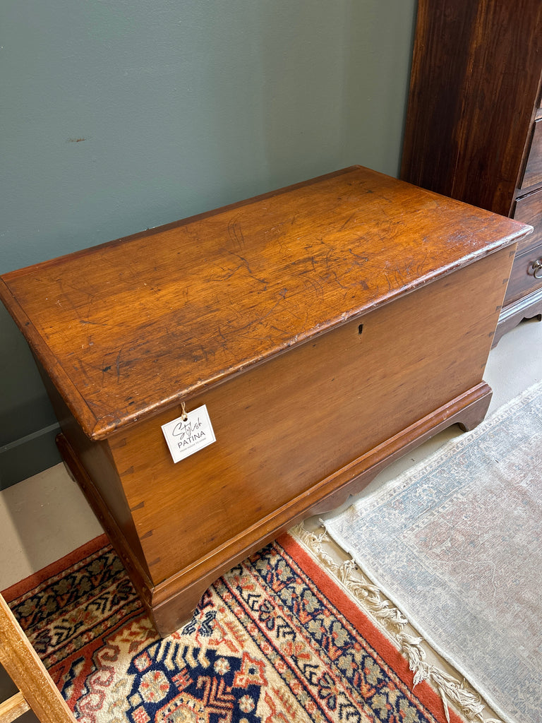 Meet Jack:  Vintage Dovetail Chest. This timeless wooden chest is a study in simplicity and strength. Crafted with traditional dovetail joints and a central keyhole detail, it reflects the kind of craftsmanship that never goes out of style. Its clean lines and warm finish make it a versatile piece-additional covered shelf that makes it ideal for storing linens, seasonal décor, or treasured keepsakes.