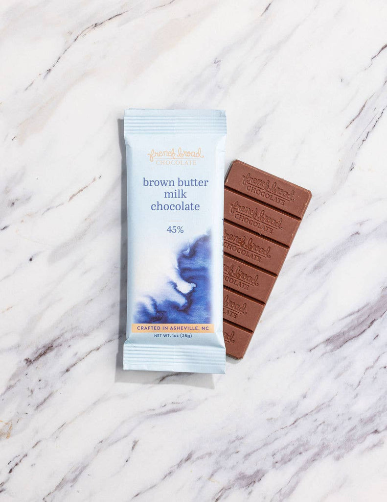 Introducing our latest creation, the Brown Butter Milk Chocolate 45% bar. This exquisite delight by French Broad Chocolate embodies our commitment to integrity, intention, and gratitude. This treat is not just a confection, but a journey to Asheville, NC where every bite is crafted with care. Enjoy the rich, creamy milk chocolate harmoniously blended with brown butter. Perfect for discerning taste buds, it's more than just a chocolate bar, it's a taste of our dedication to honouring people and place.
