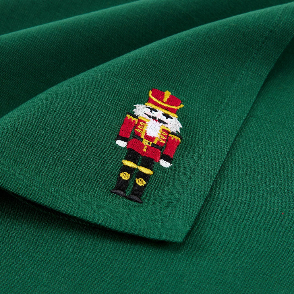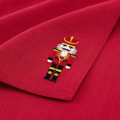 Celebrate the season in style with the Holiday Embroidered Napkin Set. Designed to bring a touch festive charm to any tablescape, each napkin in this set of four features a beautifully embroidered holiday motif, including a nutcracker, wreath, Christmas tree, and stack of gift boxes. Available in rich red, classic green, and crisp white, these napkins are perfect for mixing and matching with your favorite holiday table decor. Crafted from soft and durable 100% cotton, this set of reusable napkins is designed for repeated use, ensuring your holiday tablescape remains effortlessly elegant year after year. Hemmed edges provide a polished finish while preventing wear and tear. Coordinate to any of the Elrene Home Fashions Holiday Table Collections to complete the look!