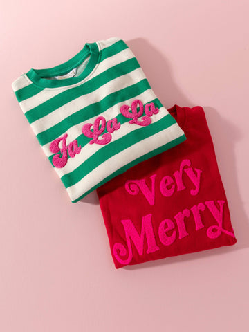 Creatures of comfort, rejoice! Whether you’re shopping for the season’s best gifts or opening presents by the tree, you will appreciate the snug and soft holiday sweatshirts from Shiraleah. The vibrant and festive “Fa La La” Stripe Sweatshirt is made from a lightweight cotton blend that features a trendy pattern of horizontal, rugby-style stripes in green and white. The words “Fa La La” are embroidered in vibrant pink letters across the front, setting the tone of holiday cheer! Its classic round neck and banded hems make it the perfect casual fit and your ultimate holiday season accessory. Pair with other items from Shiraleah’s Merry Everything Collection to complete your look! * Shiraleah is a trend-driven lifestyle brand focused on the little gifts that make life special! * Machine wash, tumble dry low * Made from cotton and polyester * Made in China * Vegan