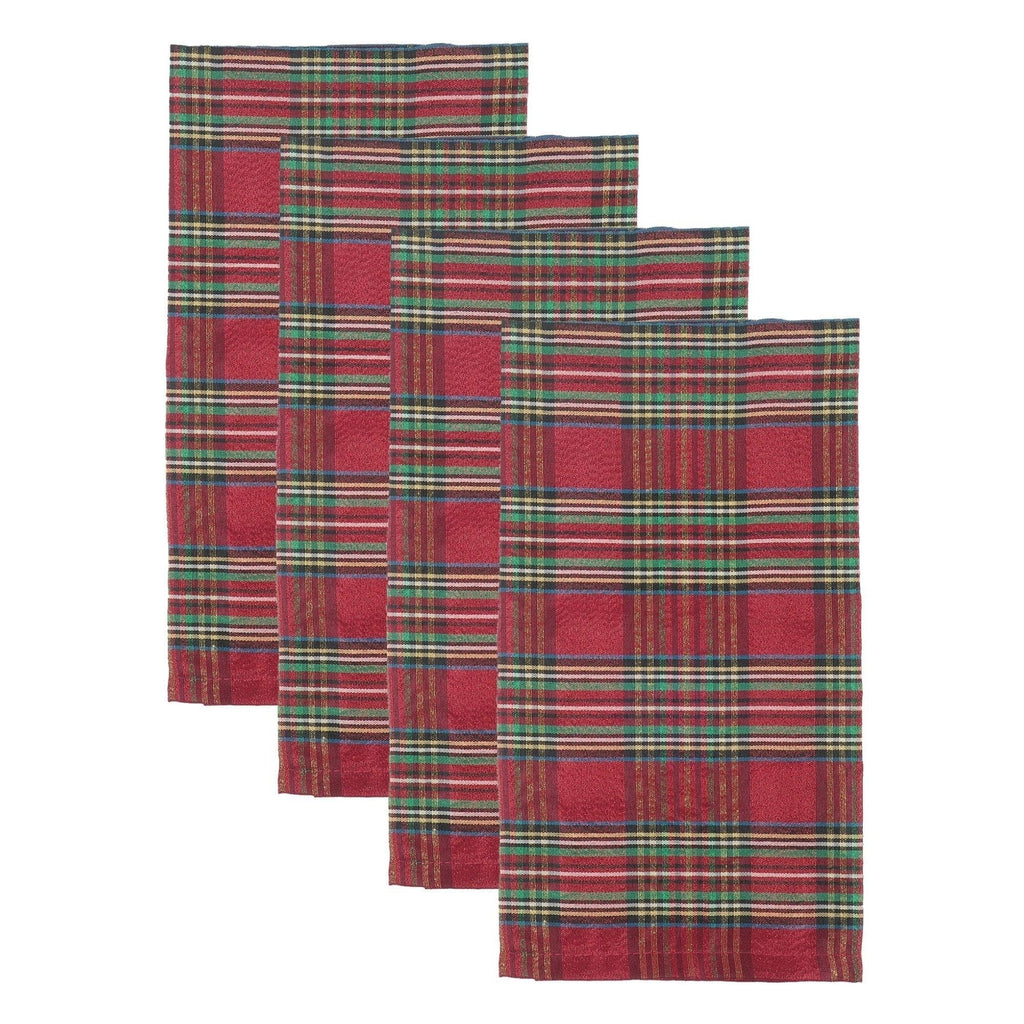 Add a touch of festive sparkle to your holiday table with the Lenox Holiday Nouveau Dazzle Napkins, Set of 4. Featuring a classic red and green tartan pattern enhanced with shimmering metallic accents, these cloth napkins bring vibrant elegance and seasonal cheer to any celebration. Crafted from a durable blend of 88% polyester and 12% metallic fibers, they offer a luxurious look with easy-care convenience—machine washable for hassle-free cleanup after every gathering. Perfectly coordinated with the Holiday Nouveau Gold dinnerware collection by Lenox, these napkins help you create a beautifully cohesive and dazzling holiday tablescape that will impress family and guests alike.