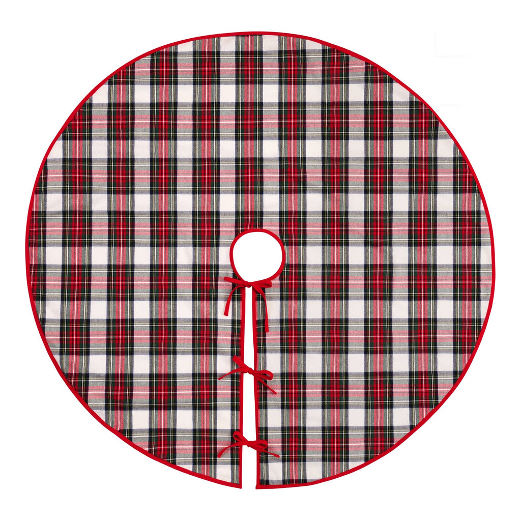 Dress up your tree in festive plaid perfection with our Christmas Classic Holiday Plaid Tree Skirt. Designed in a traditional yarn-dyed plaid, this cozy tree skirt features a rich holiday color palette of red, green, black, and white, and is sure to bring a warm and inviting touch to your seasonal décor. Crafted from 100% cotton, this product offers natural softness and a classic touch to your holiday decor. Thoughtfully designed with a neatly hemmed edge and charming red tie closures for a secure and adjustable fit, it easily wraps around the base of your tree for a polished and festive display. Coordinate with pieces from the Christmas Classic Holiday Plaid table linen collection to complete the look. Easy care—machine wash in cold water on a gentle cycle for effortless maintenance.