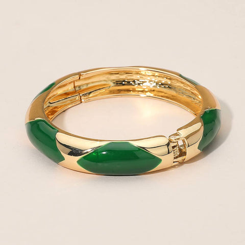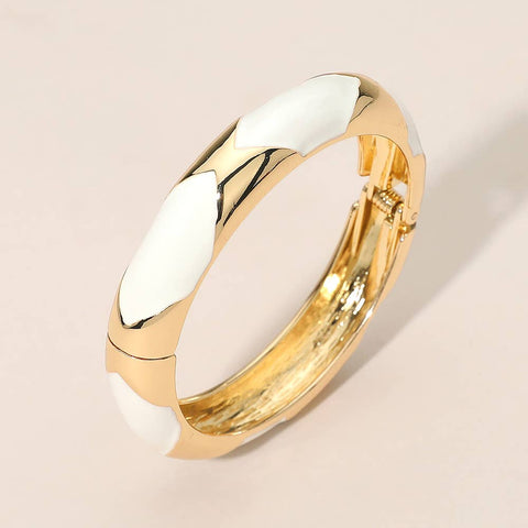 Size : 0.6" H, 2.3" D Hinged Closure Enhance your style with this enamel patterned bangle bracelet featuring a bold statement design and sleek finish. Perfect for elevating both casual and dressy outfits, this bracelet adds a touch of modern sophistication and timeless elegance to any look.