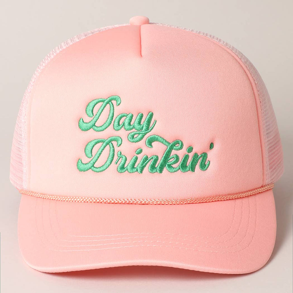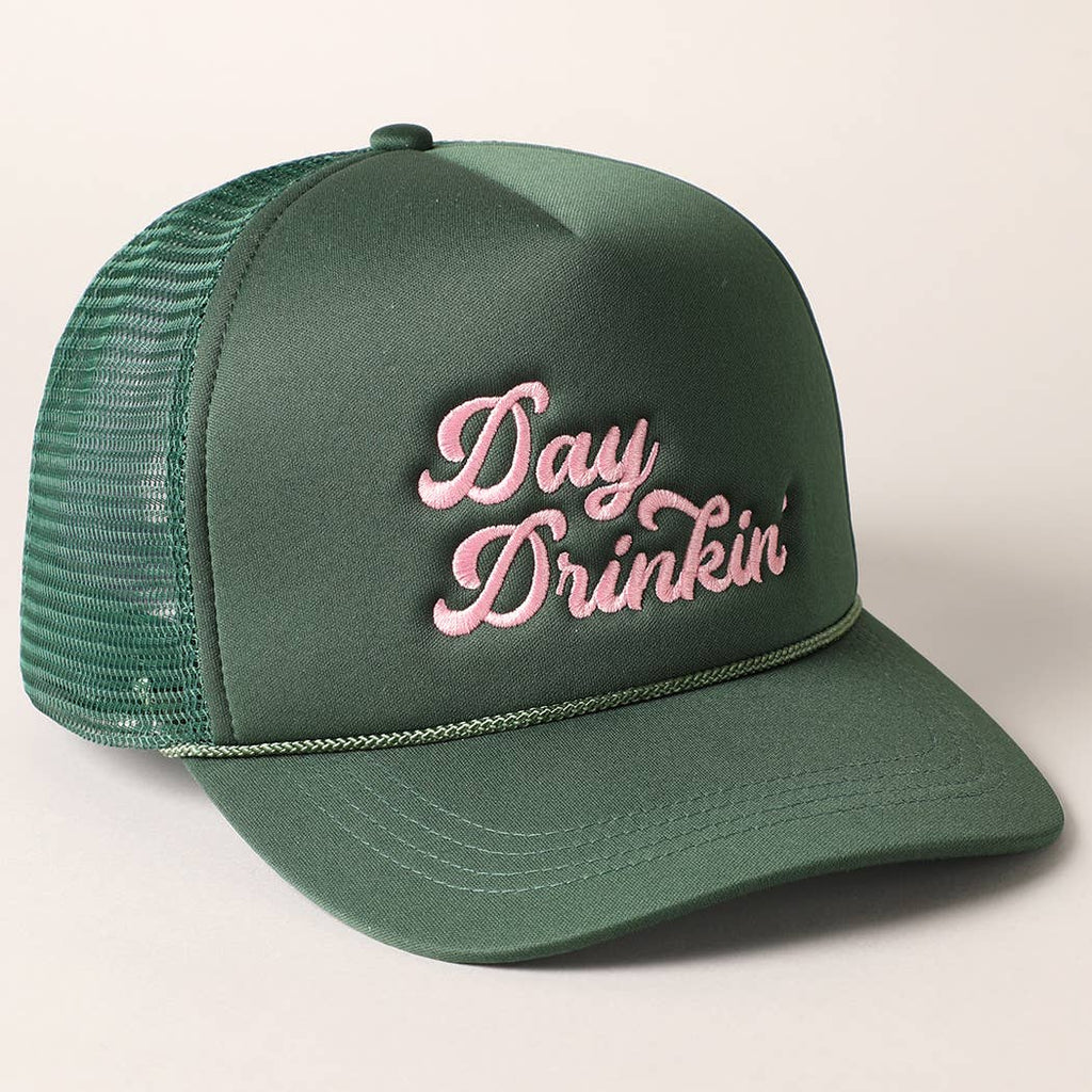 Day Drinkin Texts Embroidery Mesh Back Trucker Hat - "day drinkin" Text Embroidery - 5 Panel Trucker Hat - Meshed Back - Casual Hat for Everyday Fashion *One Size Fits All - Adjustable Strap Makes Fit Comfortable.* Embrace casual elegance with our Stylish High-Quality Casual Trucker Hat. Crafted with precision and finesse, this hat seamlessly blends comfort with sophistication. Its classic trucker style, featuring a mesh back for breathability, ensures a timeless appeal. Made from premium materials, it exudes durability and luxury. The sleek design is accentuated by meticulous attention to detail, promising a refined addition to any ensemble. Whether for a laid-back outing or a chic urban adventure, this hat effortlessly elevates your style quotient. Experience the perfect fusion of fashion and function with our Stylish High-Quality Casual Trucker Hat.