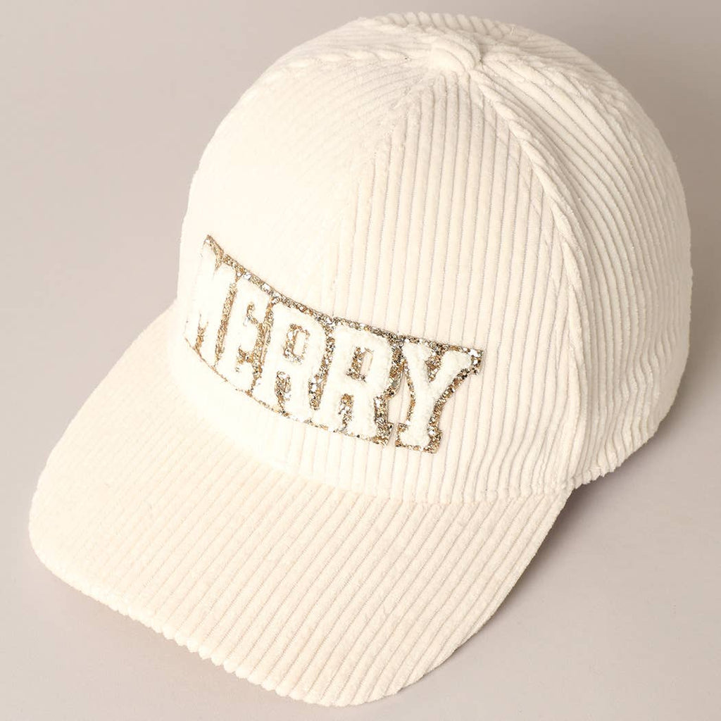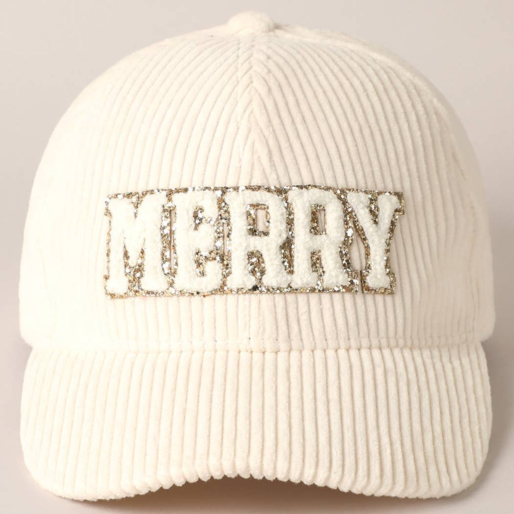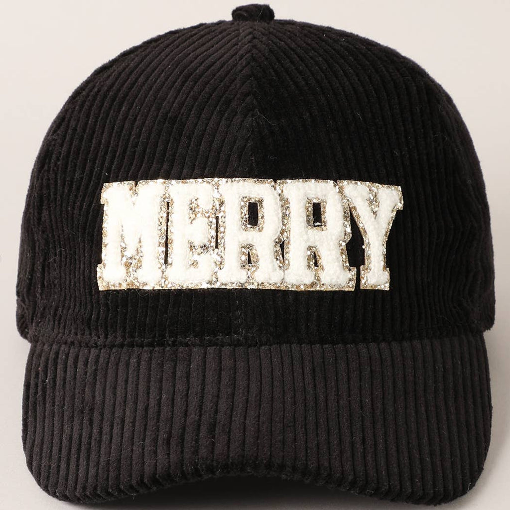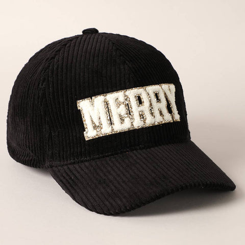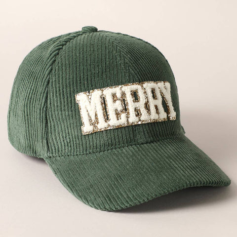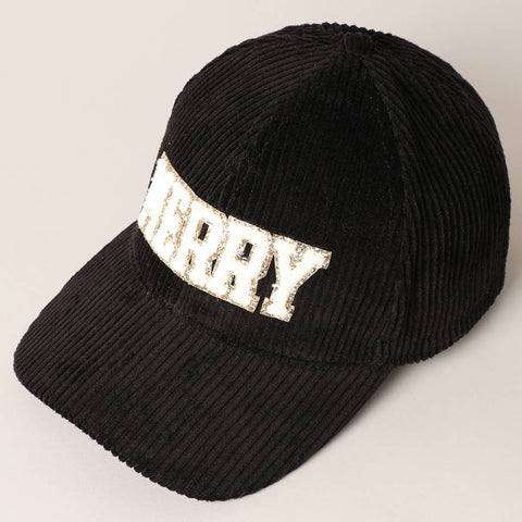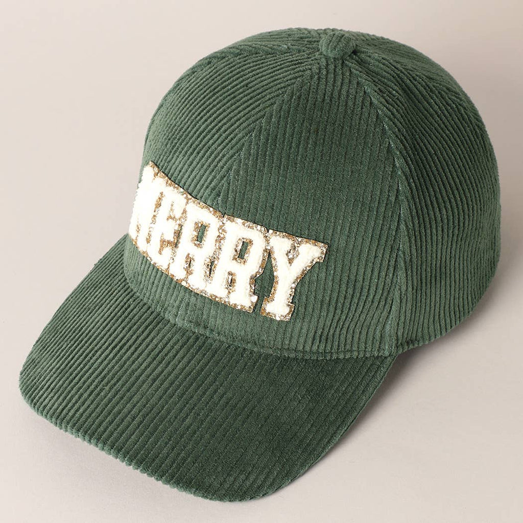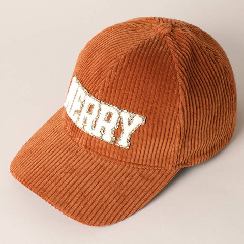MERRY Embroidery Patch Corduroy Cap - "MERRY '" Embroidery Patch - 6-Panel Design Corduroy Baseball Cap - 100% Cotton - Adjustable Buckle Closure - Relaxed Fit and Pre-Curved Visor *One Size Fits All - Adjustable Strap Makes Fit Comfortable.* Spread joy and add a stylish touch to your outfit with the MERRY Embroidery Patch Corduroy Cap. This cap combines classic corduroy texture with playful embroidery for a unique and fashionable accessory. Brighten up your wardrobe with the MERRY Embroidery Patch Corduroy Cap, blending timeless corduroy with a joyful message for a cap that stands out with style and personality.