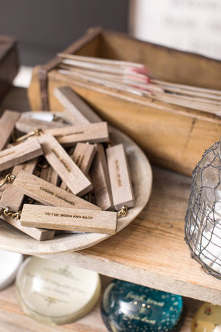 Carry a touch of inspiration wherever you go with this beautifully crafted wood quote keychain. Made from high-quality, natural wood, each piece showcases a unique grain pattern, adding character and charm. Laser-etched with an uplifting or meaningful quote, this keychain is a perfect blend of simplicity and elegance. Lightweight yet durable, it’s ideal for holding keys, decorating bags, or gifting to loved ones. The smooth finish and sturdy metal ring ensure practicality and long-lasting use. Personalize your day with a thoughtful message on a stylish accessory! Hardware: 2" long Wood: 3.5" long